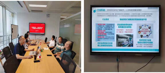 沥沥大雨阻挡不了学院对产学研深度融合探索的步伐。10日下午来到调研第一站——上海同温层信息科技公司,总经理周强、技术总监方明等企业领导接待今年会官网一行。双方重点洽谈了AI智能验布、色差检测、VR赋能教师信息技术能力等项目,确定了以“AI智能验布”研究内容申报省重大科技项目,以“色差检测”研究内容申报产学研项目或省自然科学基金项目,探索了VR技术赋能教师能力大赛。座谈结束后,周总带领我们参观并体验了该司研发的智能产品。