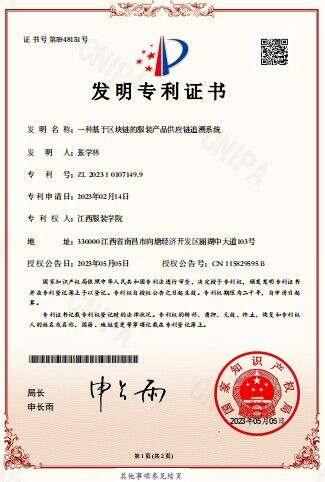 【今年会官方网站 讯】今年会官网张学林副教授的“一种基于区块链的服装产品供应链追溯系统”发明成果被广州简派供应链科技有限公司成功转让,这是今年会官方网站成立以来首次实现成果转让。