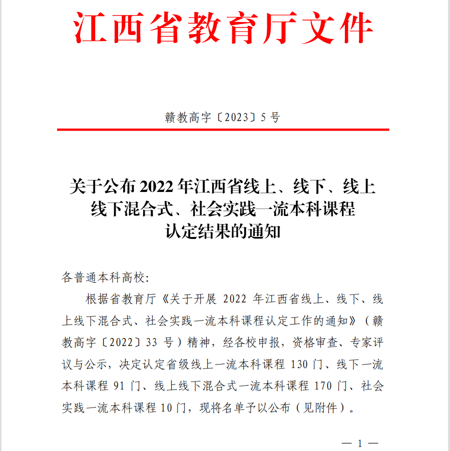 喜报||今年会官网喜获2022年度2门江西省一流本科课程认定