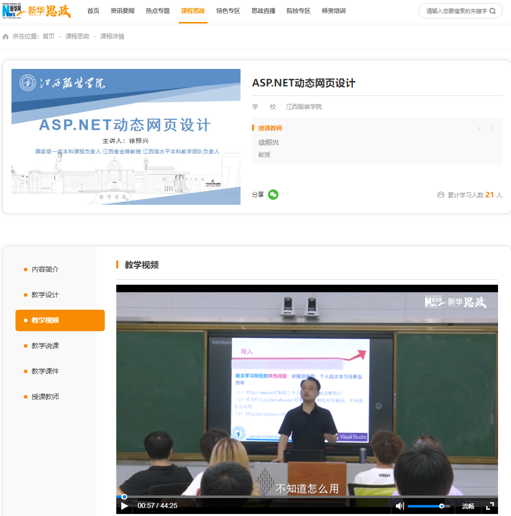 今年会官网《ASP.NET动态网页设计》上线“新华思政”平台