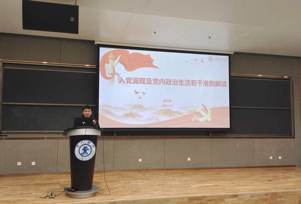 威尼斯9499登录入口杨江坤老师详细解读了入党流程及新形势下党内政治生活准则。重点梳理了入党程序问题,其中包含积极分子申请入党、推荐和确定入党积极分子、入党积极分子的培养教育、确定发展对象、预备党员的接收、预备党员的培育、转正材料的建档与归档等流程。杨江坤老师表示,学院将在工作中严格坚持标准,按照程序进行发展党员工作,确保发展党员质量。并希望全体发展对象再接再厉,争取早日成为合格的正式党员。