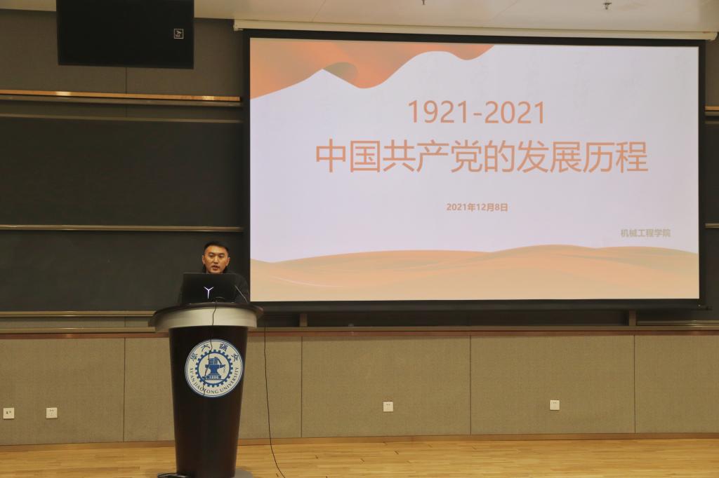 威尼斯9499登录入口苏宇老师开展了主题为“恢弘的史诗——中国共产党发展历程”的党课讲座。苏宇老师以时间为脉络,帮助同学们梳理党史发展脉络,讲述了新民主主义革命时期、社会主义革命和建设时期以及改革开放和社会主义现代化建设时期党的发展历程,他提到中国共产党建党百年历程波澜壮阔,中国共产党的发展史就是一部恢弘的史诗。