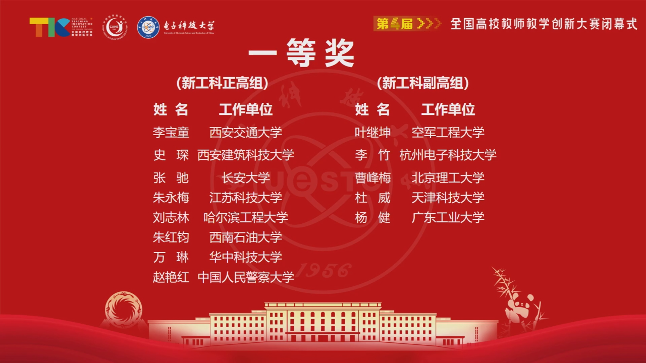 由教育部高等教育司指导、中国高等教育学会主办的第四届全国高校教师教学创新大赛总决赛于7月27-31日在电子科技大学举办。由我院李宝童教授领衔主讲,徐亮、桂亮、朱爱斌等老师组成的《机械设计基础》教学团队,以出色的教学设计和赛场表现,斩获本届大赛新工科赛道正高组一等奖。