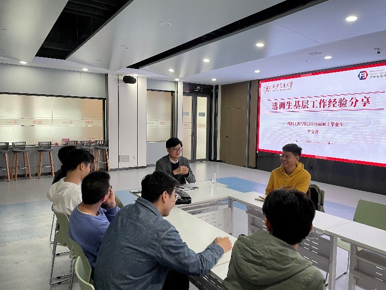 李文涛师兄首先从基层工作的选择谈起,受西迁精神的影响,在毕业的工作去向选择问题上保持跟党走,在思想上与党与国家共命运,主动在工作中选择了到脱贫第一战线去,切身为人民做事。